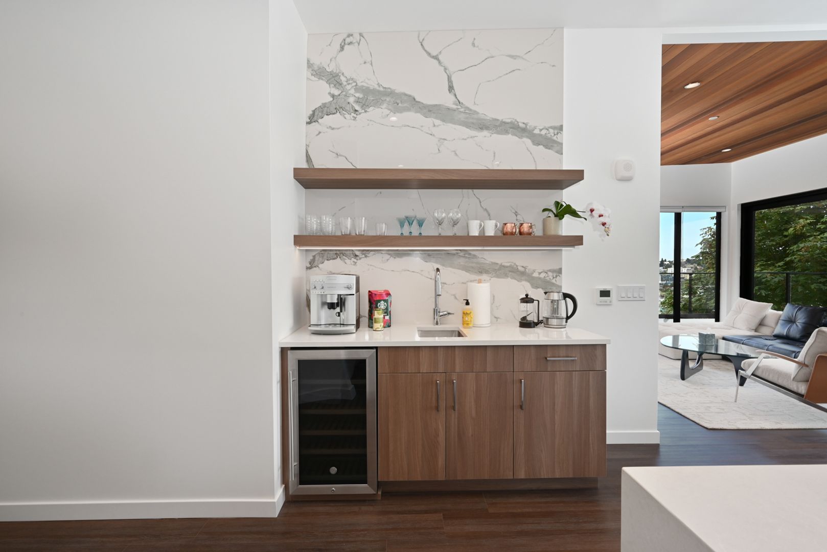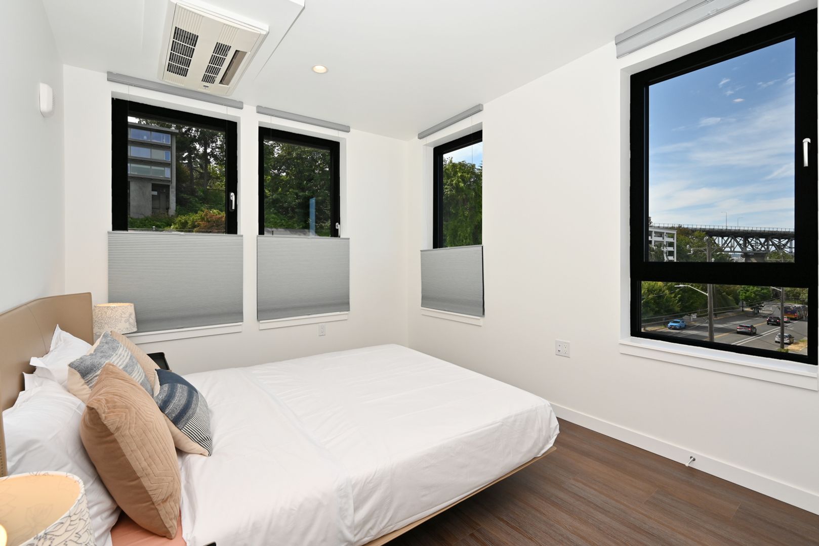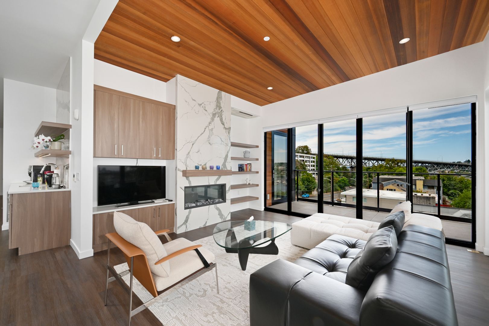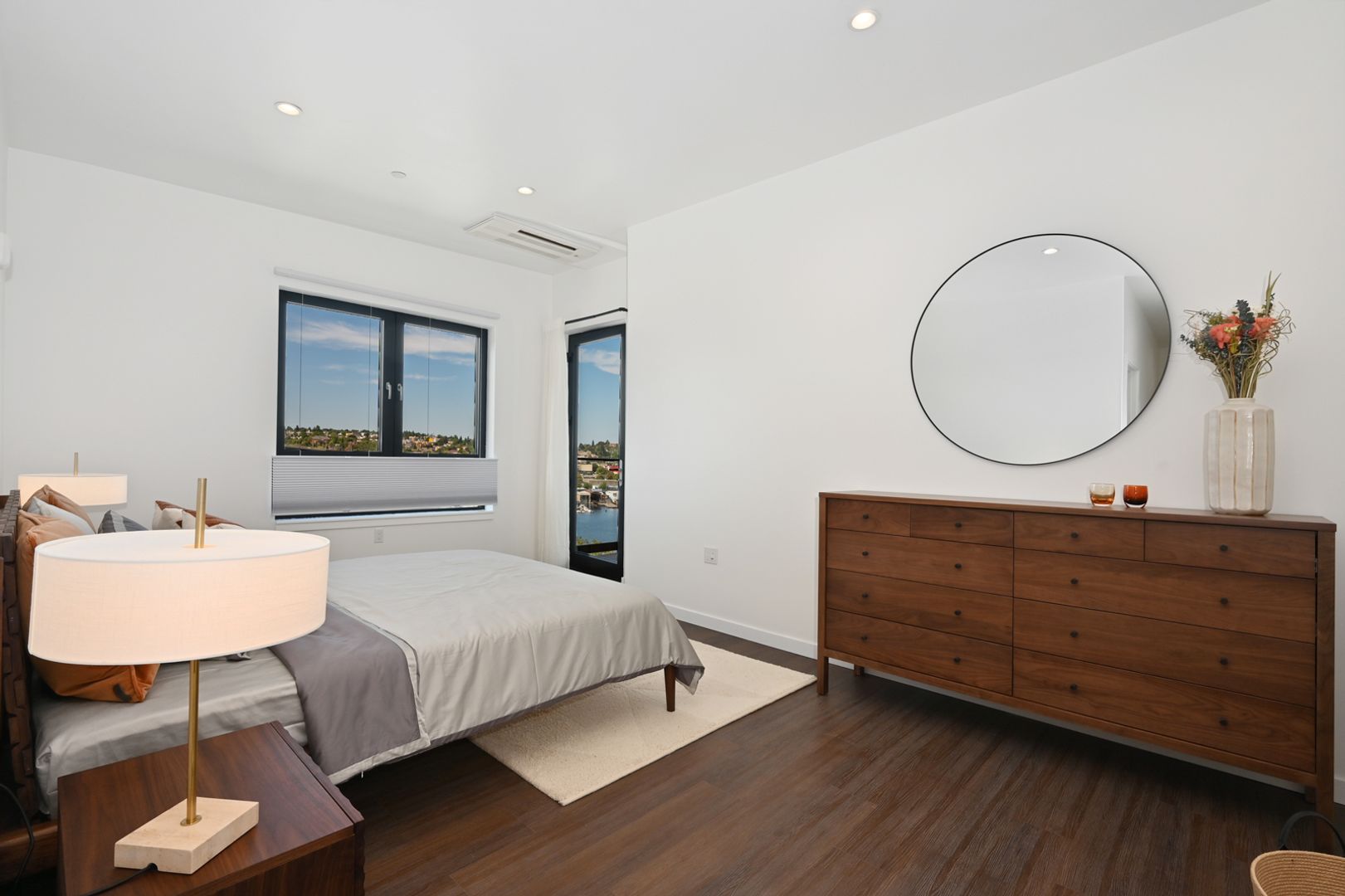 Introducing an almost brandnew fully furnished turn-key top floor luxury 3BR/2.5BA Condo with stunning views of Lake Union, Gasworks Park, mountains, and bridges. This spacious top floor 3BR/2.5BA unit boasts 1,836 SF of refined living space and is conveniently located in the heart of the city only minutes from Fremont, Westlake, South Lake Union, and Queen Anne. Easy access to restaurants, cafes, shopping, public transportation, Hwy 99 & I-5. This unit offers the perfect blend of luxury and convenience for your urban lifestyle. Stay comfortable year-round with energy-efficient heating and cooling mini split units in each zone. Energy efficient European manufactured Zola floor-to-ceiling sliding doors and windows let in lots of natural light. The covered wrap-around deck is perfect for relaxing, BBQ, and enjoying the breathtaking vistas. The chef’s kitchen’s upscale Bosch stainless steel top of the line appliances including a 5-burner gas stove, beautiful cabinets, large island, and gorgeous countertops make cooking a joy. The built-in desk adjacent to the dining room is perfect for a home office. The bar area features additional cabinets, an under-counter wine fridge, and a second sink. The luxurious master suite with deck access can accommodate a king size bed. The adjacent master bath features Grohe fixtures, two sinks, walk-in shower, and beautiful tile work. Spacious laundry room with high-capacity front loading washer/dryer, cabinets, and folding area. Two additional bedrooms, full bath, and a powder room feature the same high-end fixtures and tile work. Custom lighting, color, and fixtures throughout. This condo also includes storage in a secured covered garage as well as a community bike storage rack. Easy access to the buildings interior via secure elevator. Building is ADA Certified and includes one Parking Space with individual EV Charging Station. Fully Furnished Turn-Key Unit includes Linens, Bedding, Dish & Cookware. Professional Cleaning Service Available for an additional Charge.