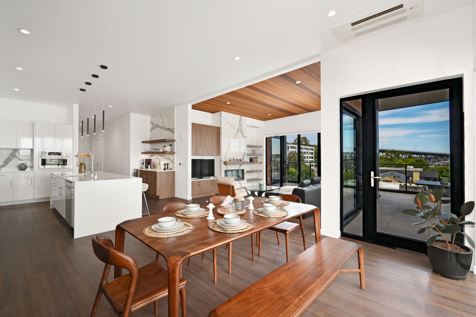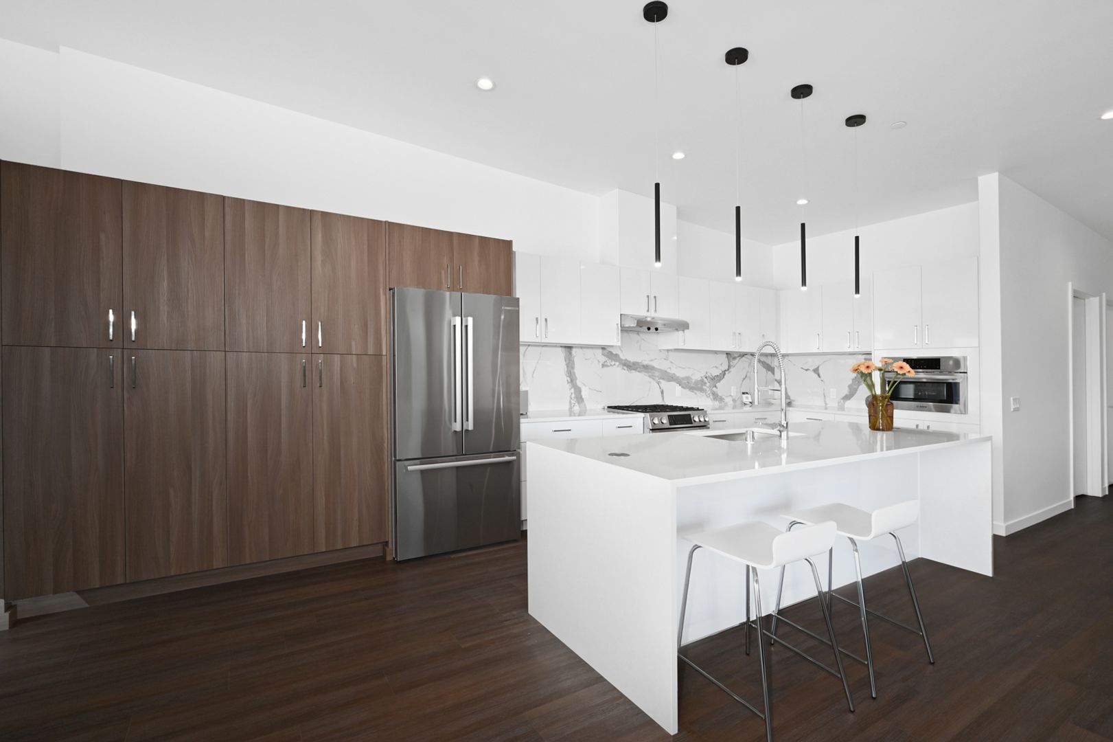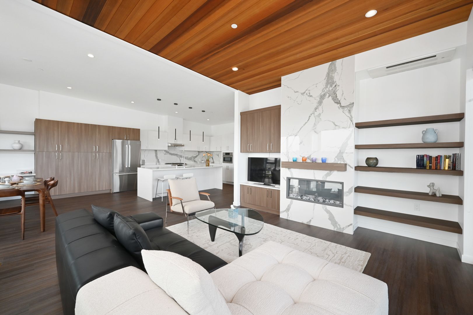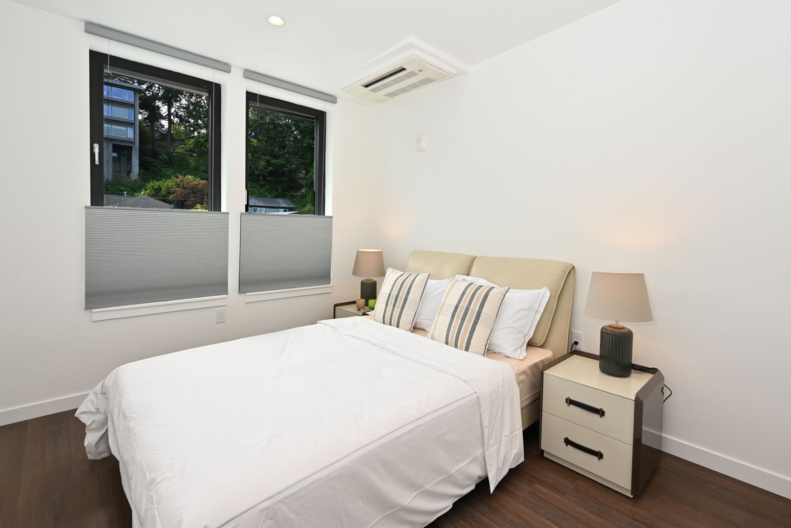 Introducing an almost brandnew fully furnished turn-key top floor luxury 3BR/2.5BA Condo with stunning views of Lake Union, Gasworks Park, mountains, and bridges. This spacious top floor 3BR/2.5BA unit boasts 1,836 SF of refined living space and is conveniently located in the heart of the city only minutes from Fremont, Westlake, South Lake Union, and Queen Anne. Easy access to restaurants, cafes, shopping, public transportation, Hwy 99 & I-5. This unit offers the perfect blend of luxury and convenience for your urban lifestyle. Stay comfortable year-round with energy-efficient heating and cooling mini split units in each zone. Energy efficient European manufactured Zola floor-to-ceiling sliding doors and windows let in lots of natural light. The covered wrap-around deck is perfect for relaxing, BBQ, and enjoying the breathtaking vistas. The chef’s kitchen’s upscale Bosch stainless steel top of the line appliances including a 5-burner gas stove, beautiful cabinets, large island, and gorgeous countertops make cooking a joy. The built-in desk adjacent to the dining room is perfect for a home office. The bar area features additional cabinets, an under-counter wine fridge, and a second sink. The luxurious master suite with deck access can accommodate a king size bed. The adjacent master bath features Grohe fixtures, two sinks, walk-in shower, and beautiful tile work. Spacious laundry room with high-capacity front loading washer/dryer, cabinets, and folding area. Two additional bedrooms, full bath, and a powder room feature the same high-end fixtures and tile work. Custom lighting, color, and fixtures throughout. This condo also includes storage in a secured covered garage as well as a community bike storage rack. Easy access to the buildings interior via secure elevator. Building is ADA Certified and includes one Parking Space with individual EV Charging Station. Fully Furnished Turn-Key Unit includes Linens, Bedding, Dish & Cookware. Professional Cleaning Service Available for an additional Charge.